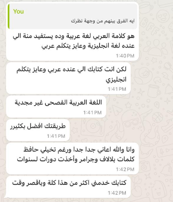 مناسب لجميع المستويات بسبب التركيز على حفظ الجمل بشكل كامل دون الكلمات فقط، ويتم ربط الجمل مع بعضها واستخدامها.